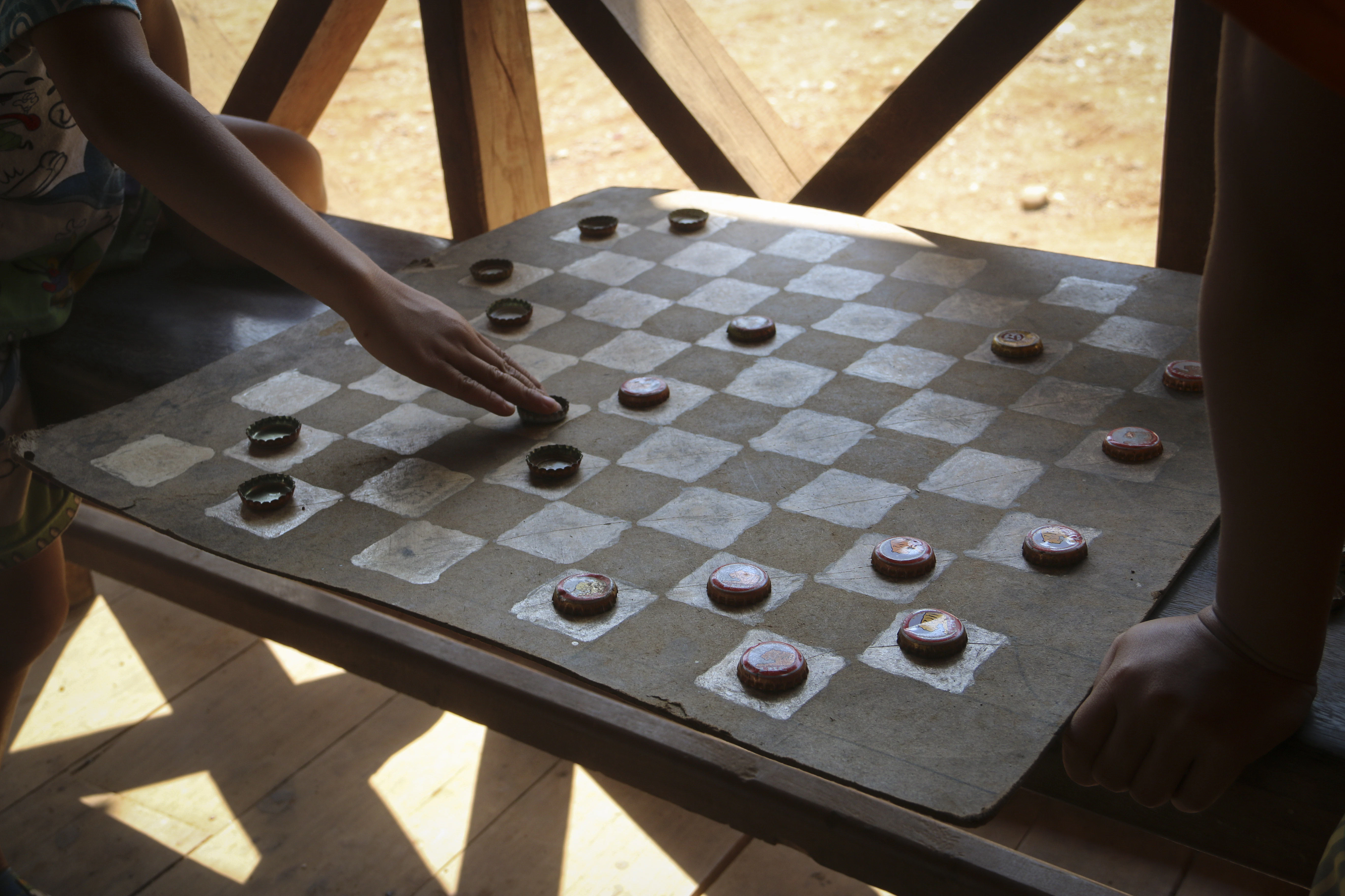 person holding black and white chess board game