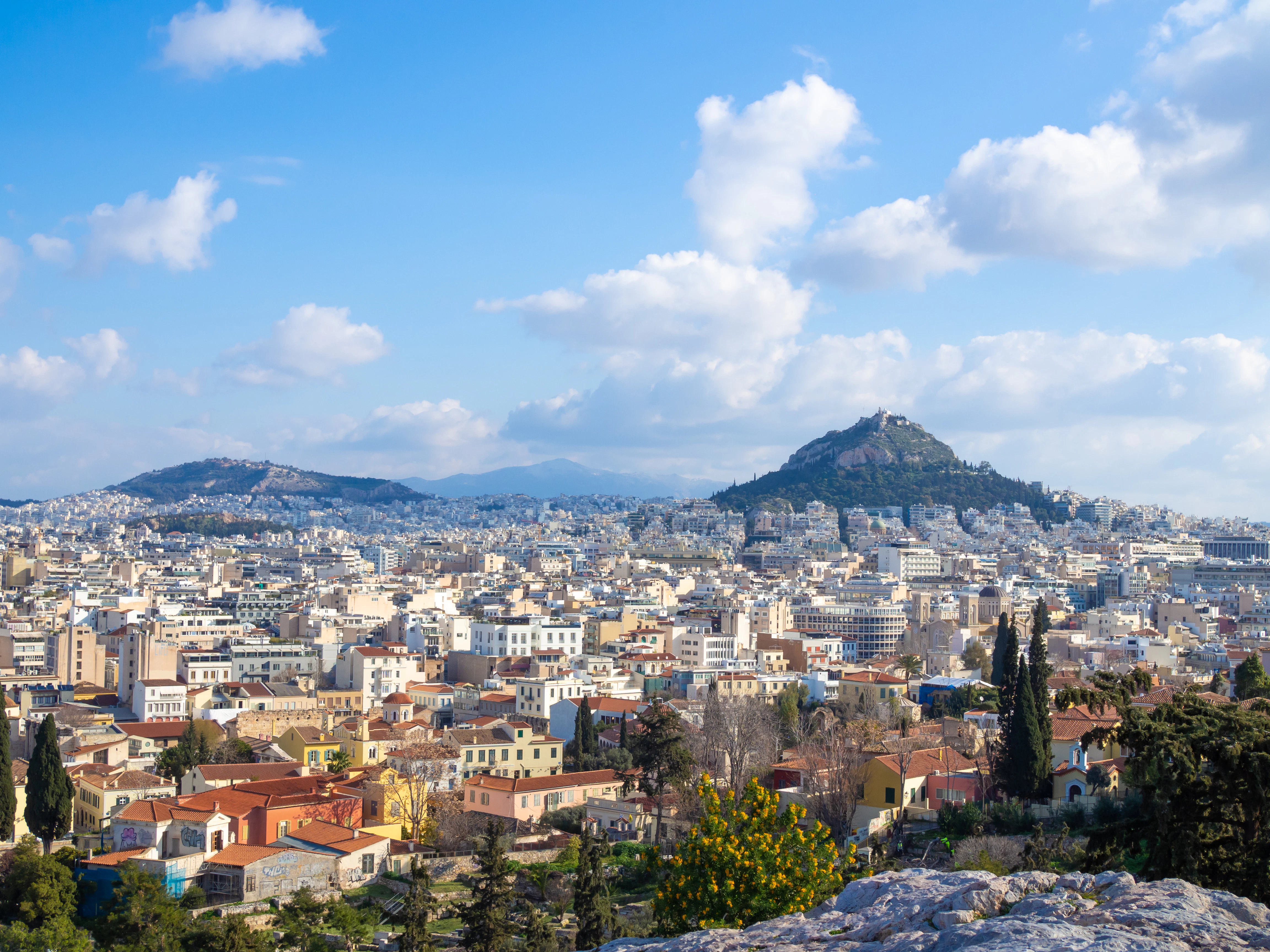 Athens, greece, is seen from a high angle.