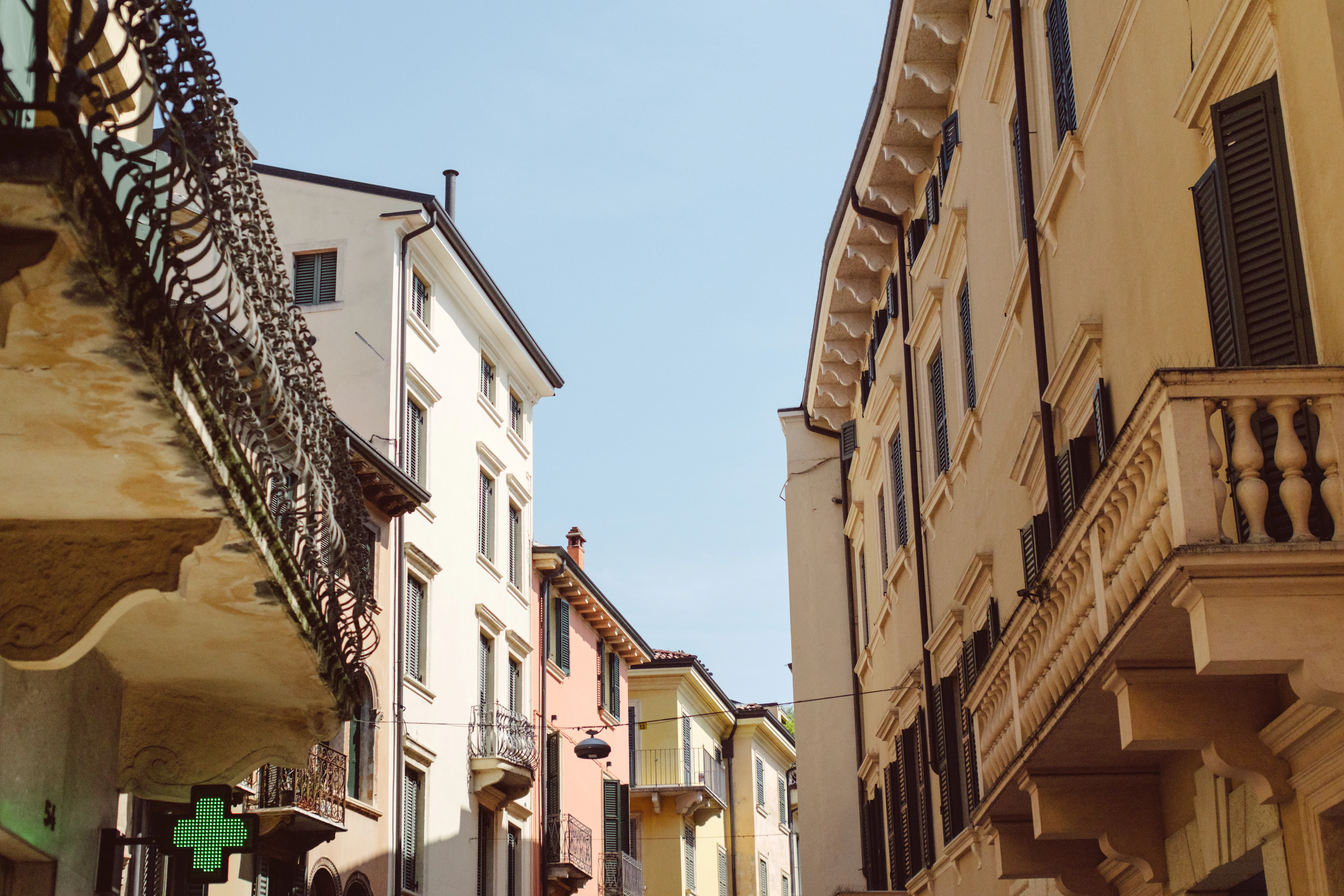a narrow street lined with tall buildings and balconies
