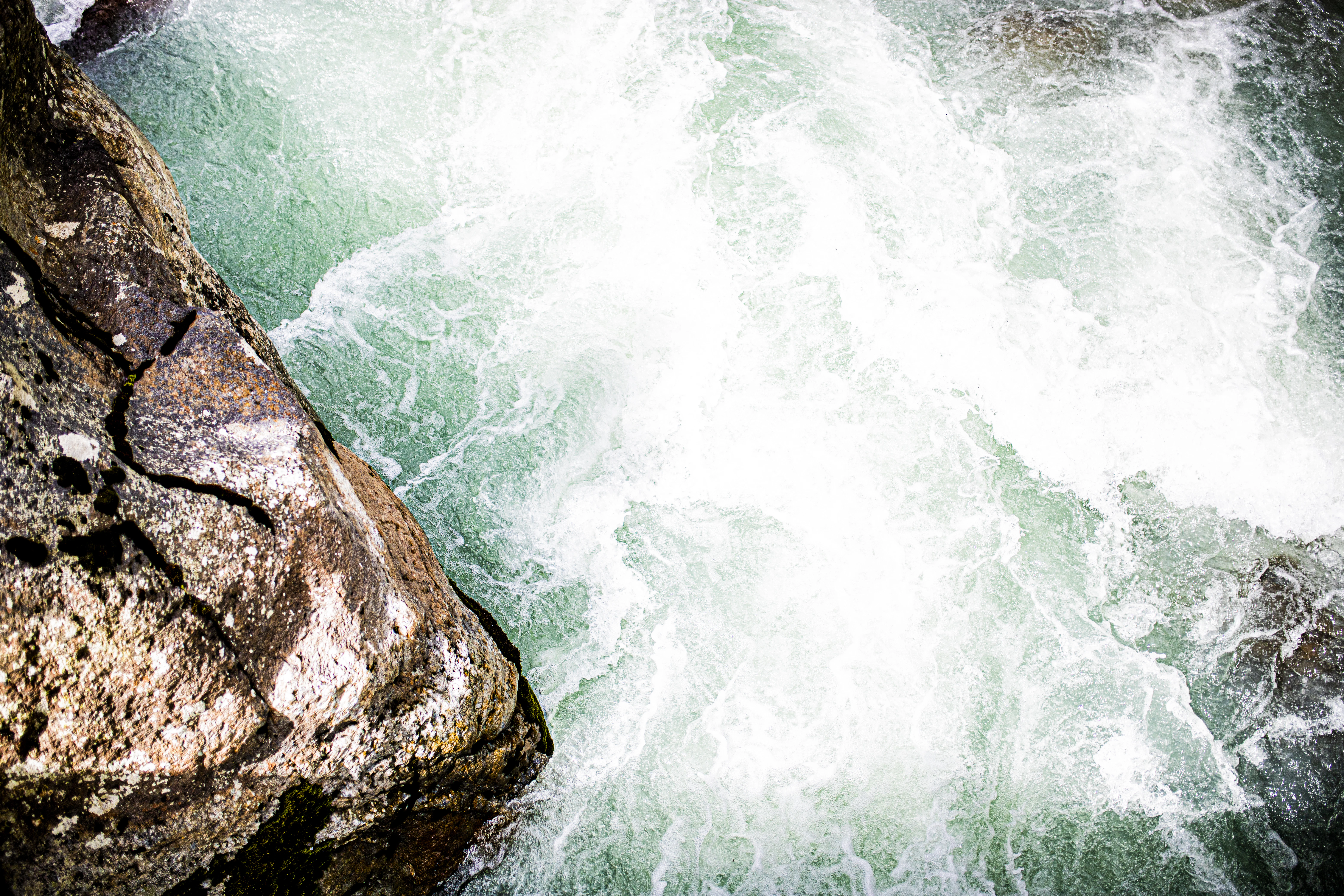 a man standing on top of a rock next to a river